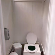 Bathroom tent with toilet, shower, sink and bathtub! Yes you can take a hot bath & gaze at the stars!